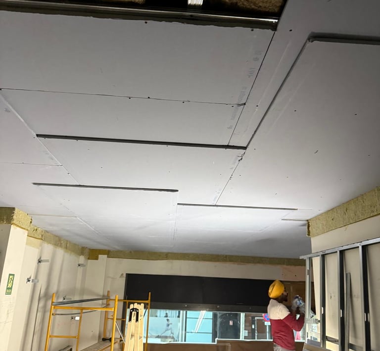 Paneles de yeso resistentes y fáciles de instalar.